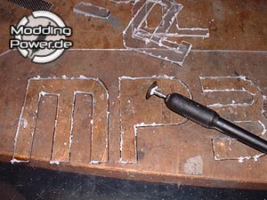 habe die Buchstaben einfach unter die schon zurecht gesägte Scheibe gelegt