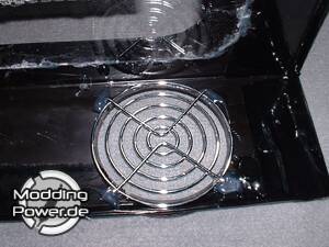 Damit man nicht einfach in den Lüfter langen kann, darf ein Gitter natürlich