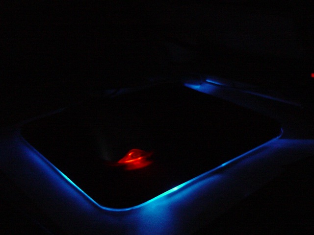 komplett leuchtendes Mauspad, sondern leuchtet nur am Rand. Das Plexi wird mit 4